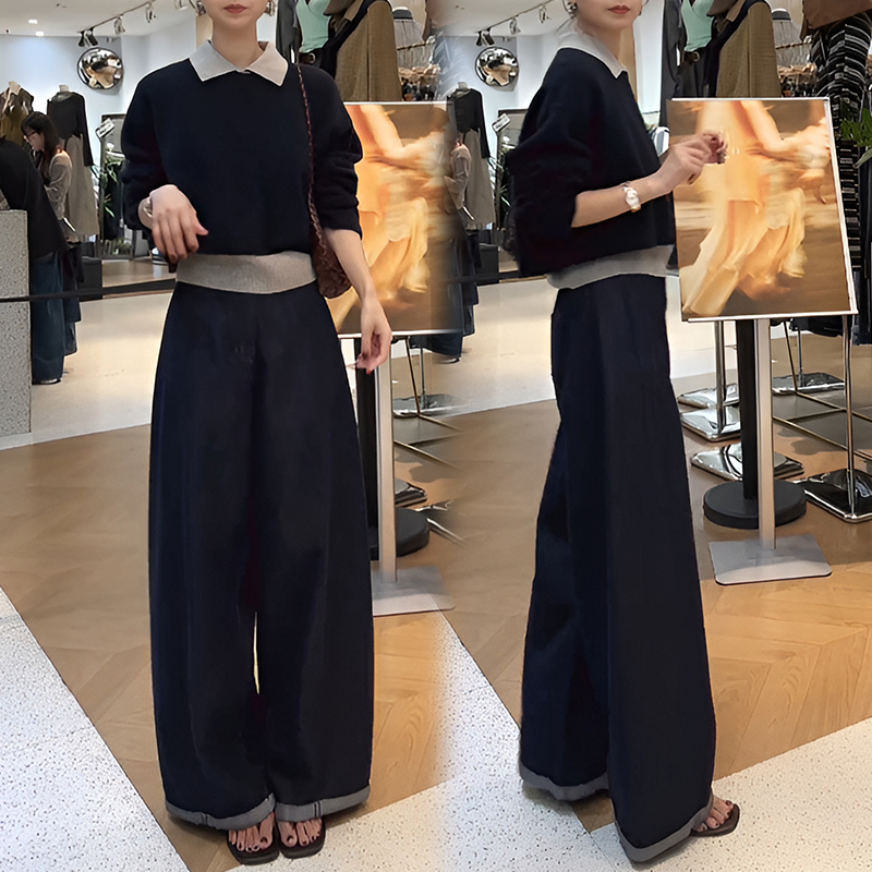 高级感轻奢时尚休闲套装女春秋新款气质撞色针织衫吊带上衣阔腿裤
