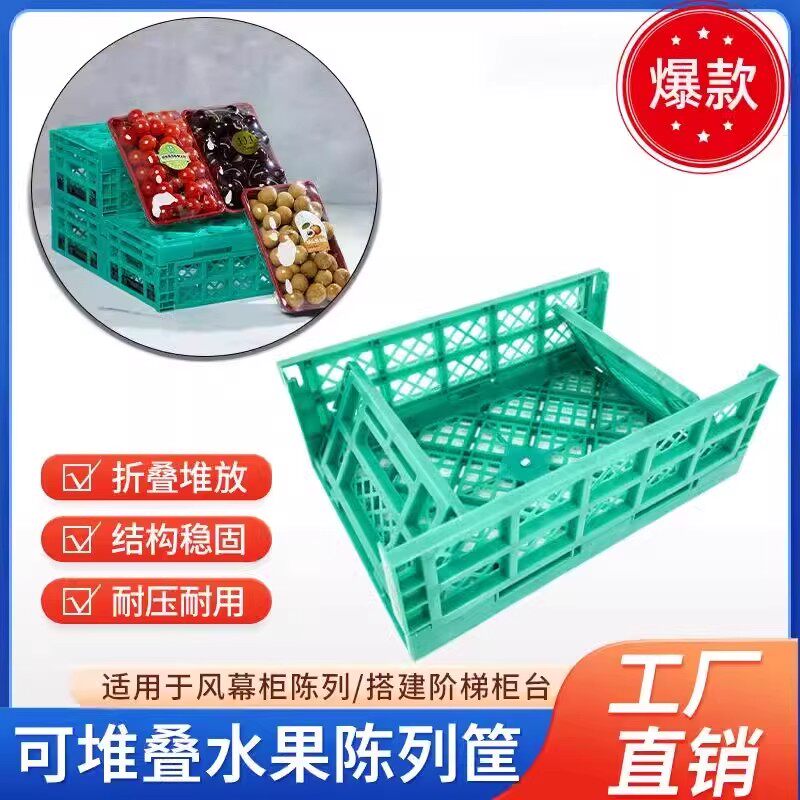 水果货架加厚塑料折叠筐超市展示架堆头陈列框蔬菜收纳摆果周转筐