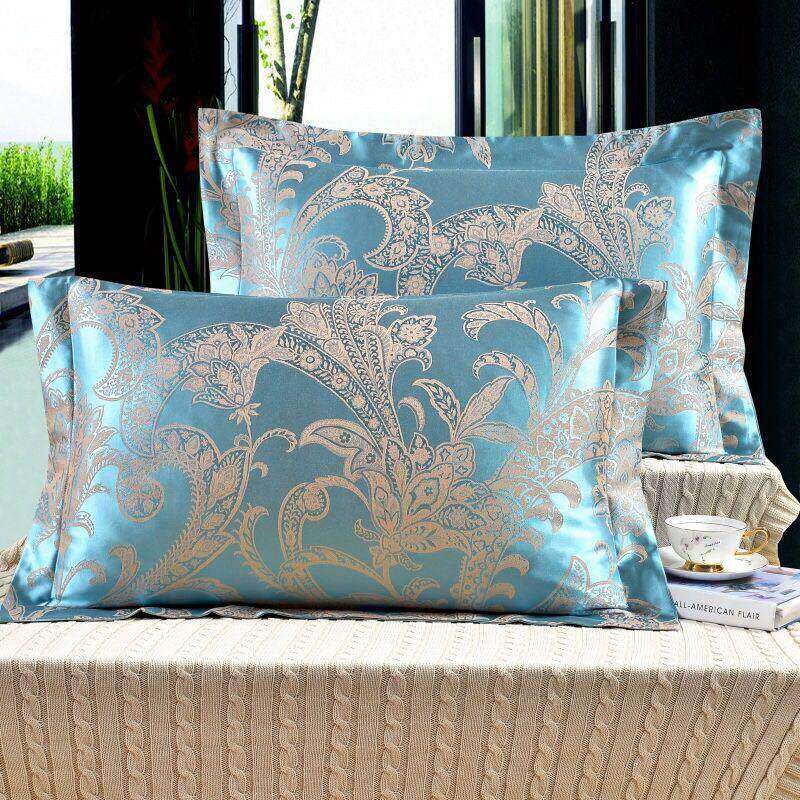 枕套夏季凉爽 冰丝欧式棉提花枕套 棉加大枕头套成人枕套一对