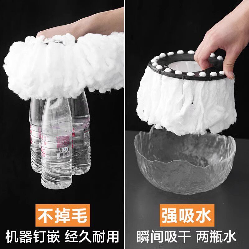 家用圆形通用加厚加密旋转拖把头替换棉头手压拖把杆墩布头地拖拖