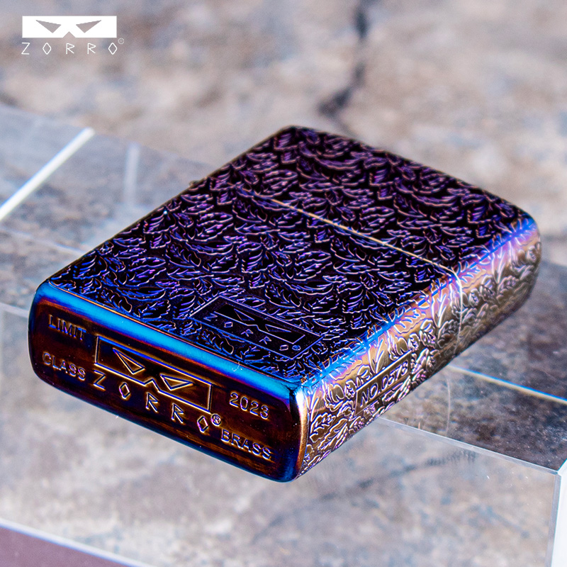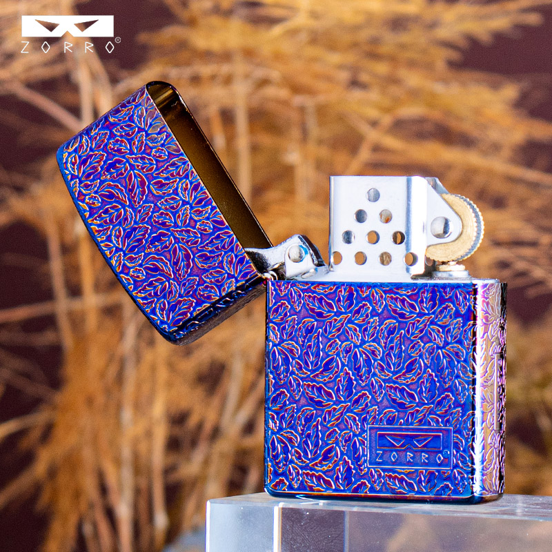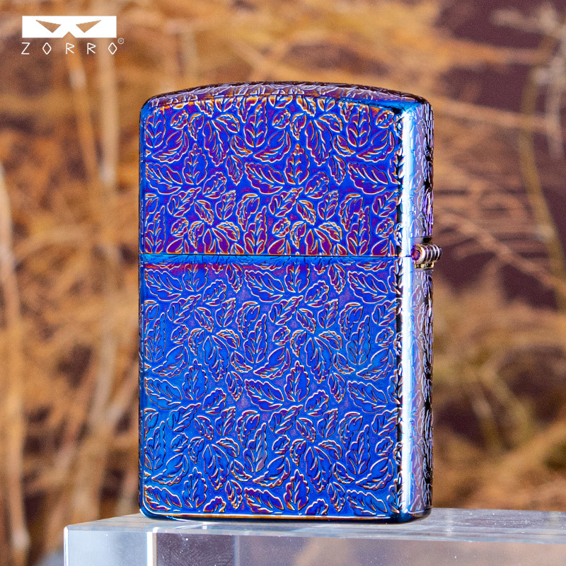 佐罗二代熏蓝叶子煤油打火机创意花纹五面精雕升级防风口高档时尚
