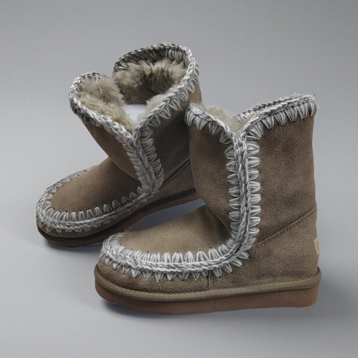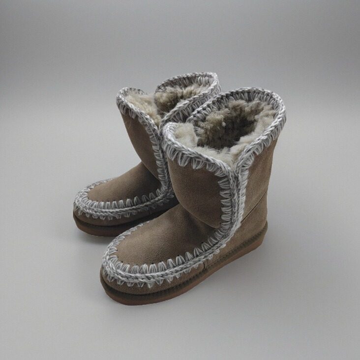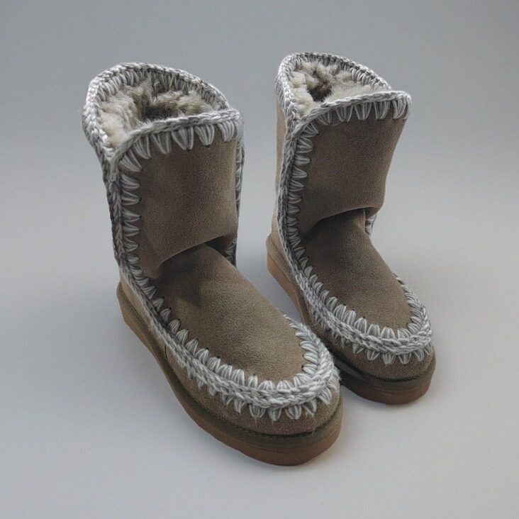 MOU爱斯基摩中筒雪地靴女冬季保暖皮毛一体羚羊棕色靴子懒人女鞋