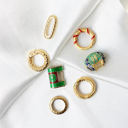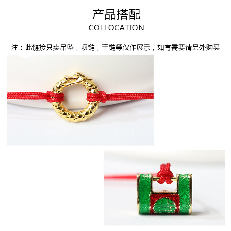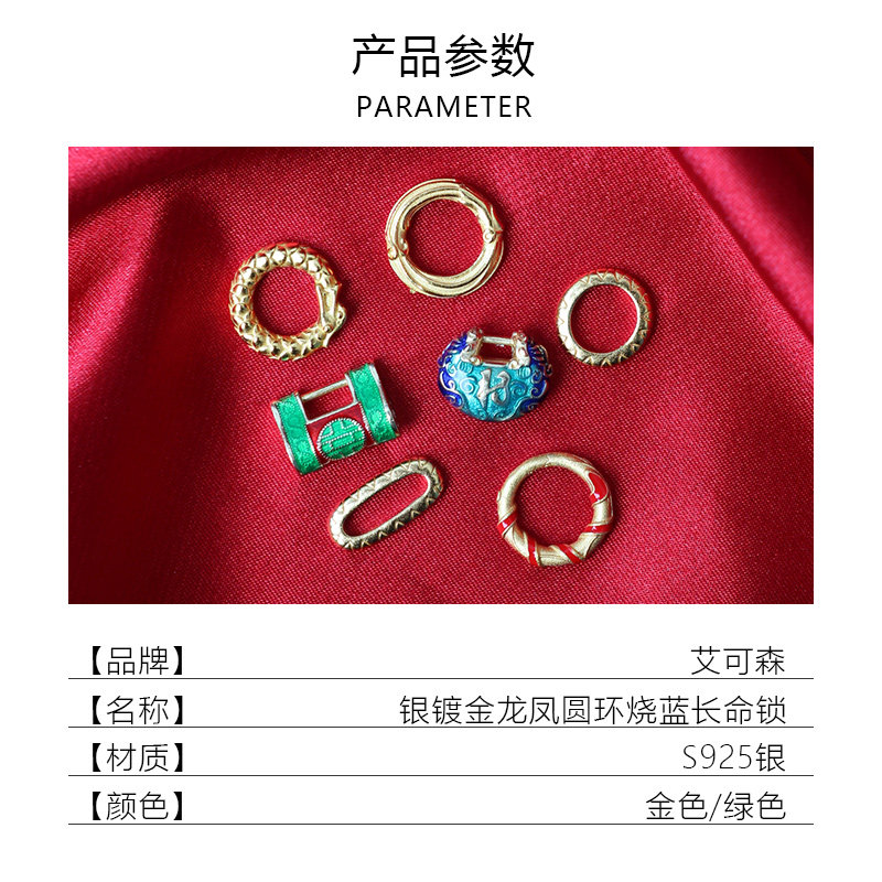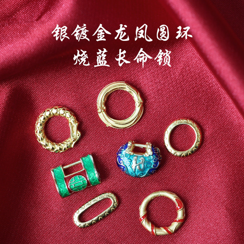 龙凤平安扣S925银镀金跑环圆环烧蓝长命锁编手链项链小配件diy