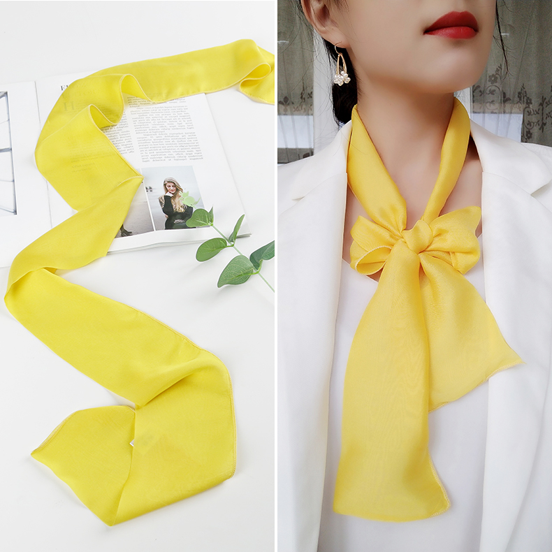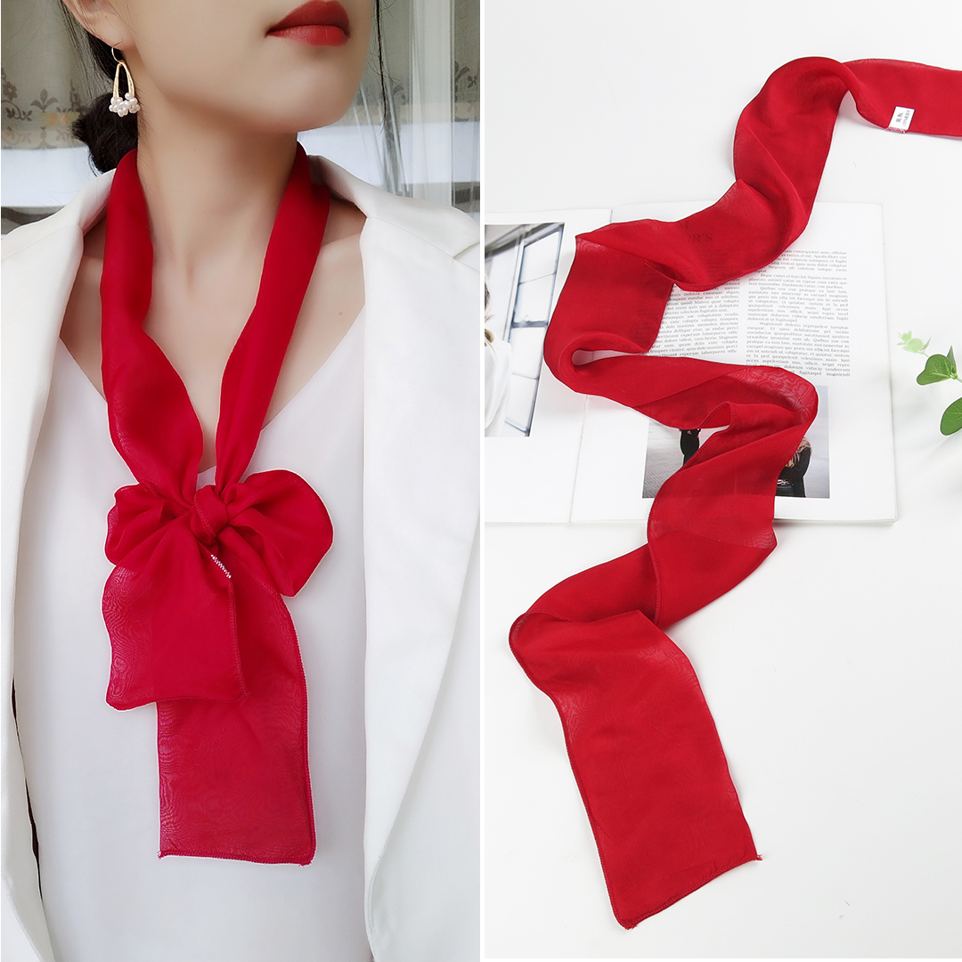 西装丝巾小长条女装饰绑包包真丝细窄复古纯色春秋纱巾长款小围巾