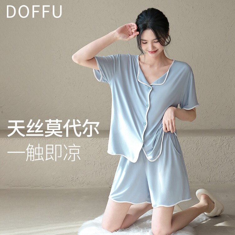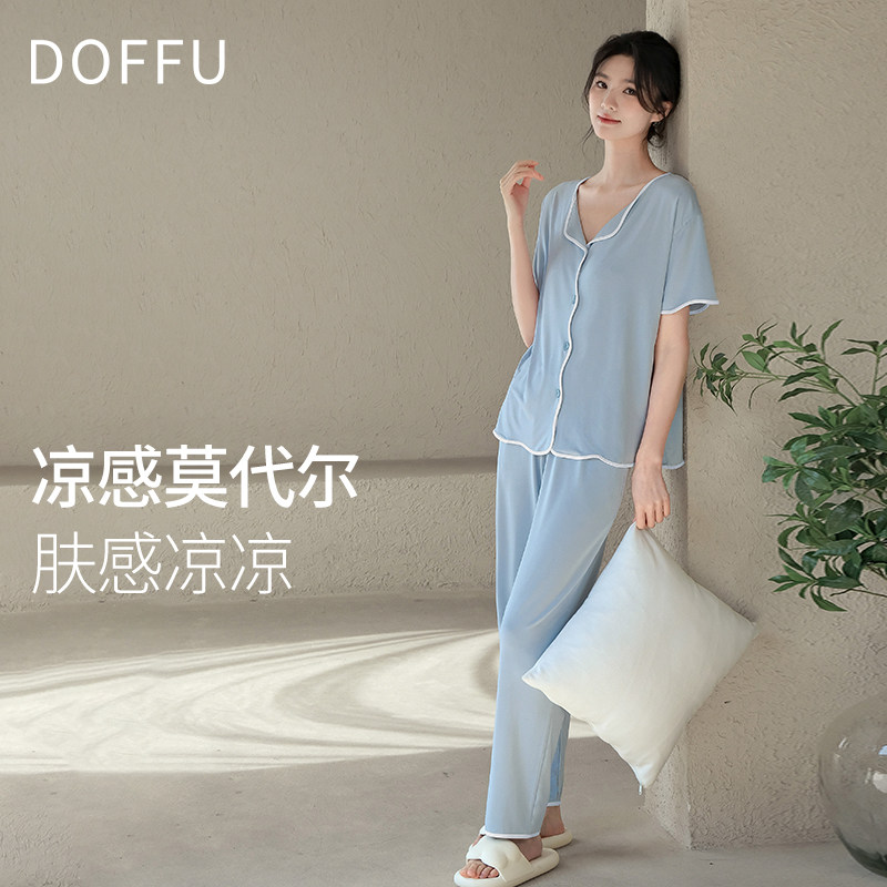 莫代尔睡衣女款夏季2026新款女士带胸垫短袖长裤家居服大码高级感