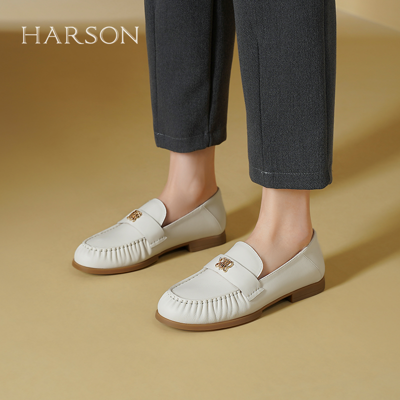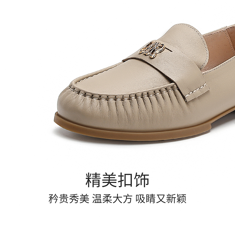 哈森平底鞋女秋季新款时尚休闲一脚蹬两穿软面乐福鞋HL247405