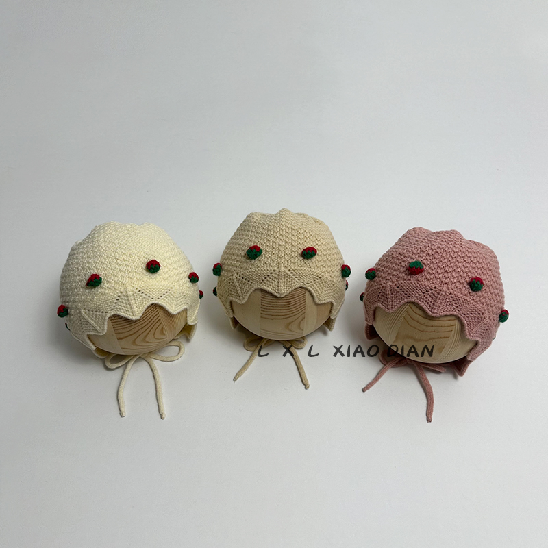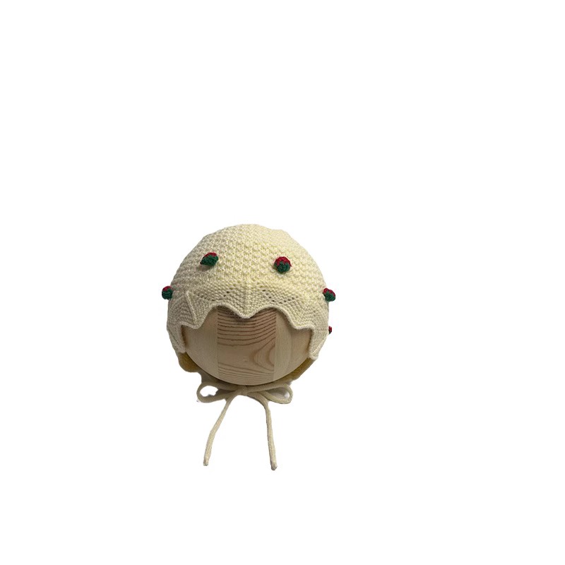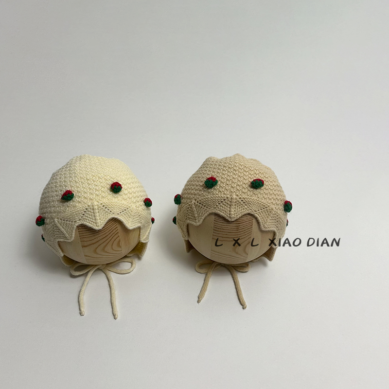 婴儿护耳帽春秋季纯棉内衬系带宫廷帽冬天婴幼儿宝宝针织毛线帽子
