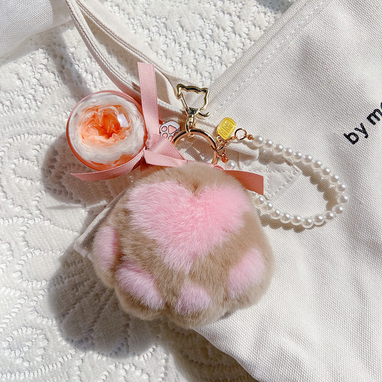 獭兔毛绒猫爪钥匙扣珍珠链永生花礼品汽车钥匙包包挂件创