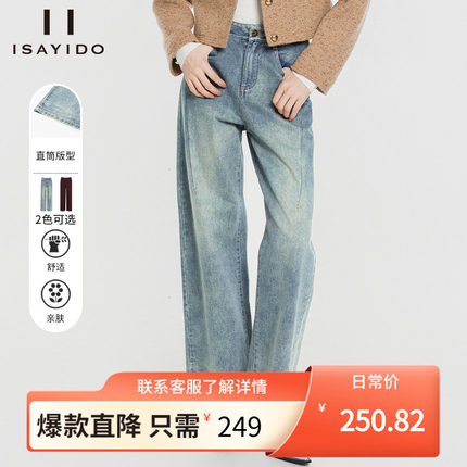 傲丝度高腰薄绒牛仔裤女复古港风休闲裤宽松阔腿直筒裤子冬装新品