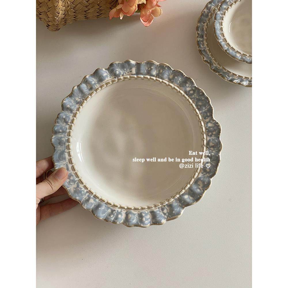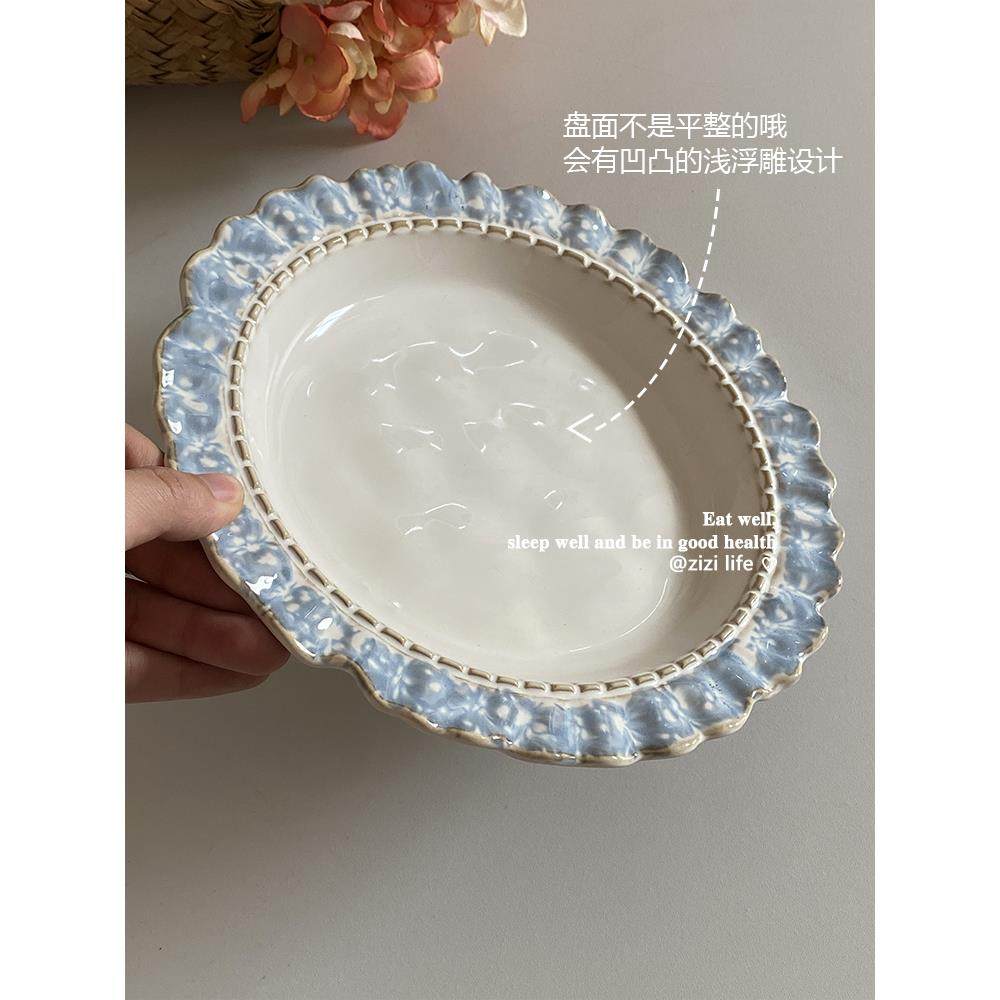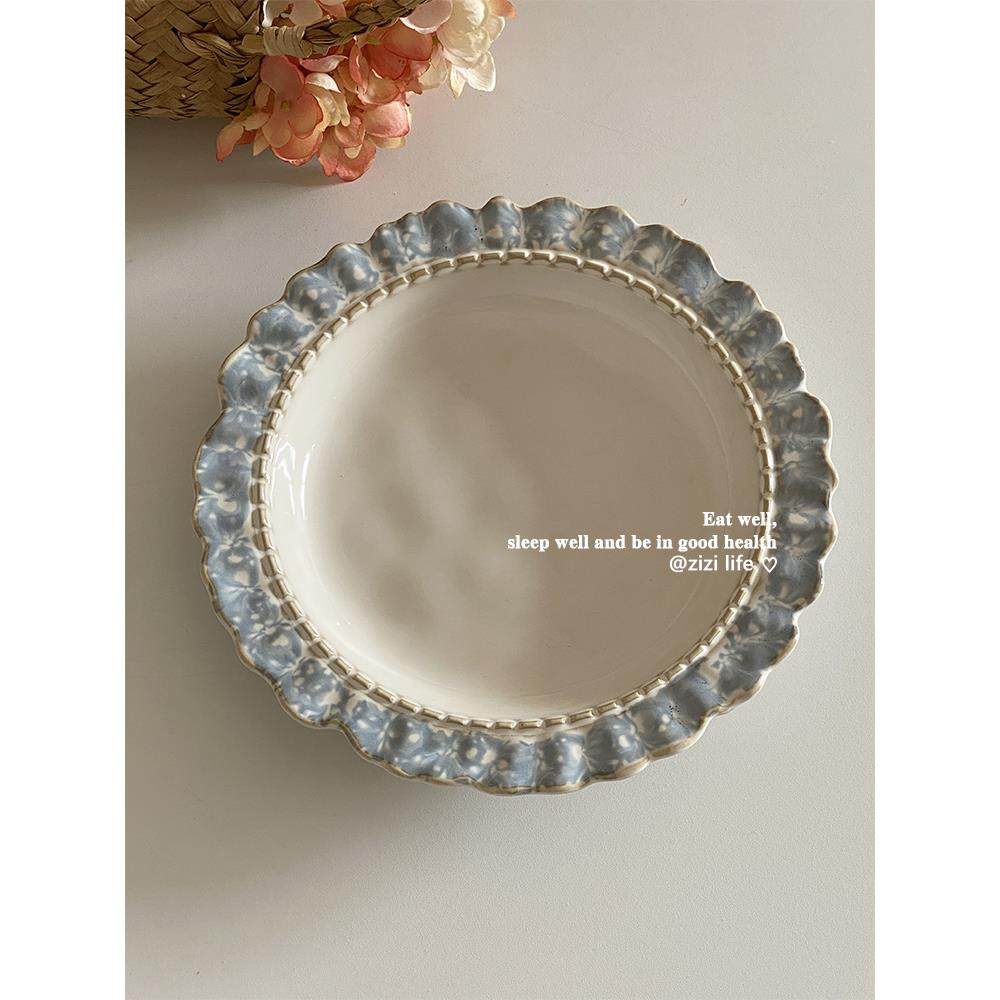有格调ins复古烟蓝系列陶瓷盘子小料碟菜肴盘甜品盘早餐盘