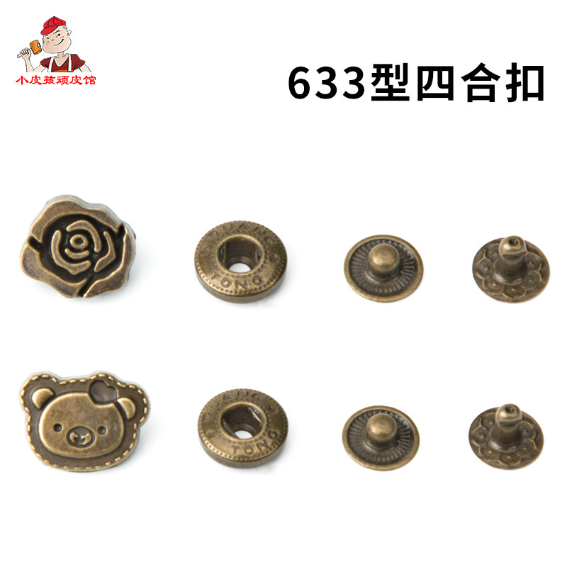 diy手工皮革633花样花型四合扣卡通复古异形立体钱包弹簧暗扣皮具