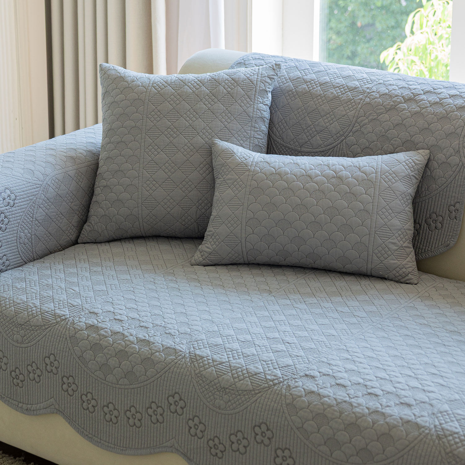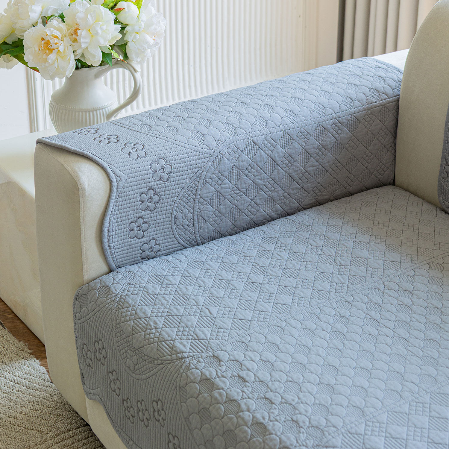 2026新品简约轻奢全棉刺绣沙发垫防滑四季通用纯棉绗缝坐垫可定制