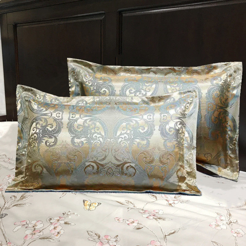 全棉贡缎提花枕套一对装欧式枕头套一对家用婚庆结婚乳胶枕枕芯套