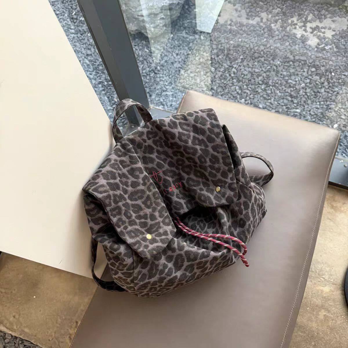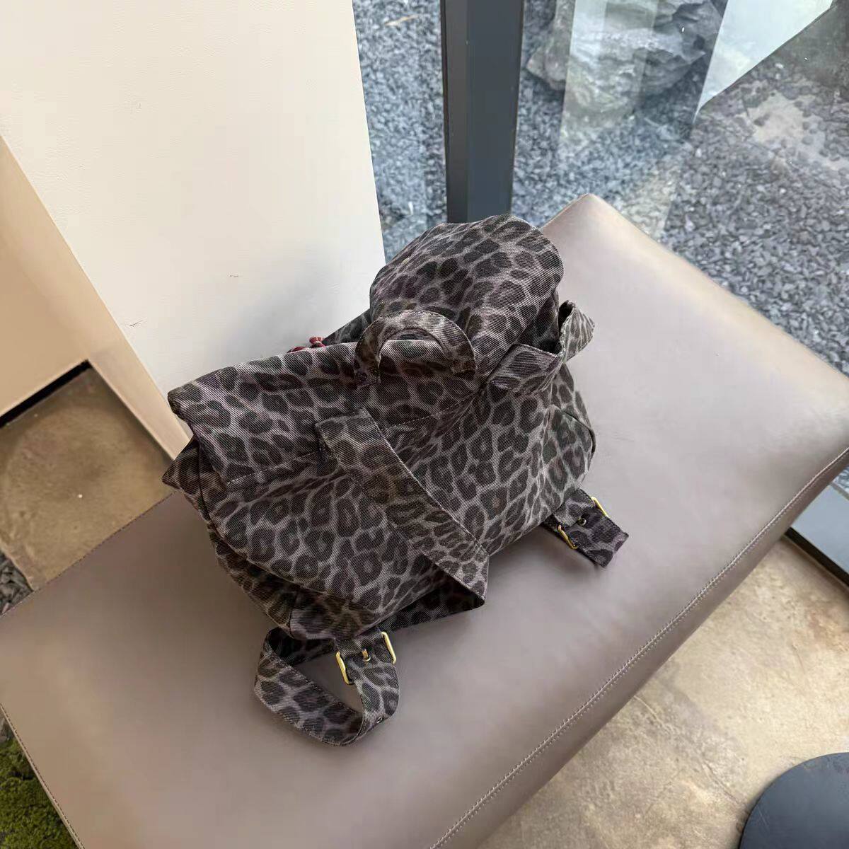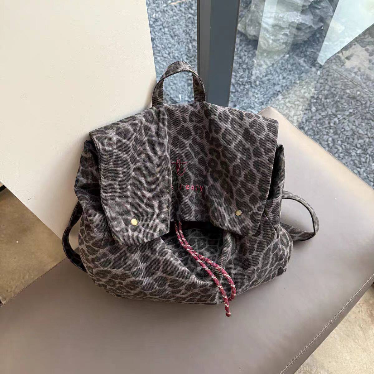 韩国小众设计豹纹帆布双肩包女背包大容量2025新款百搭潮流高级感