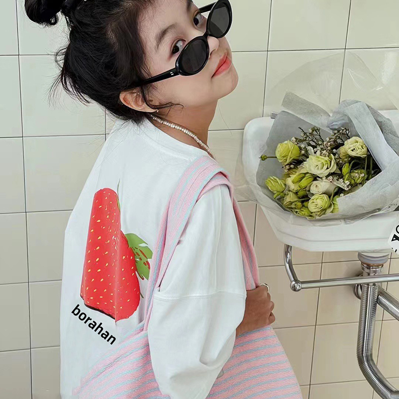 女童短袖T恤夏装2023新款中大童纯棉宽松圆领儿童夏季中长款T裙潮
