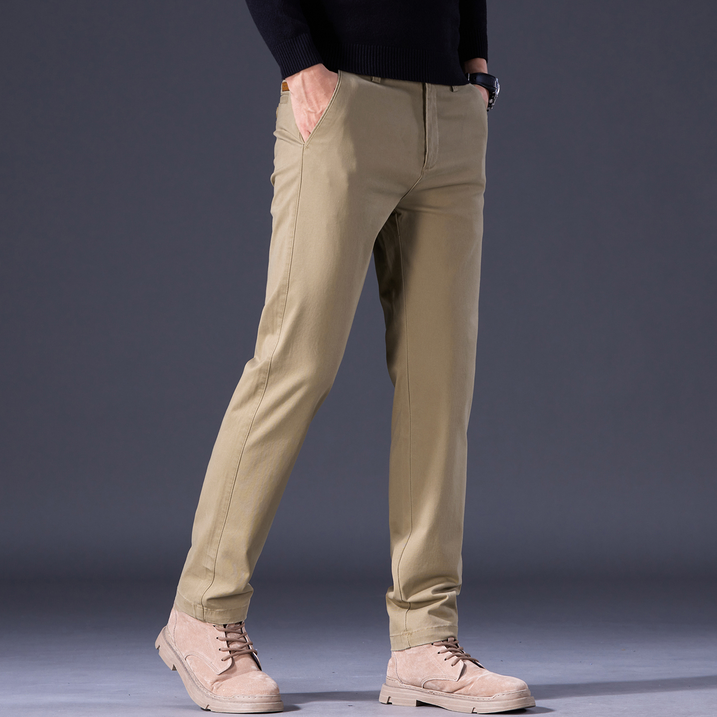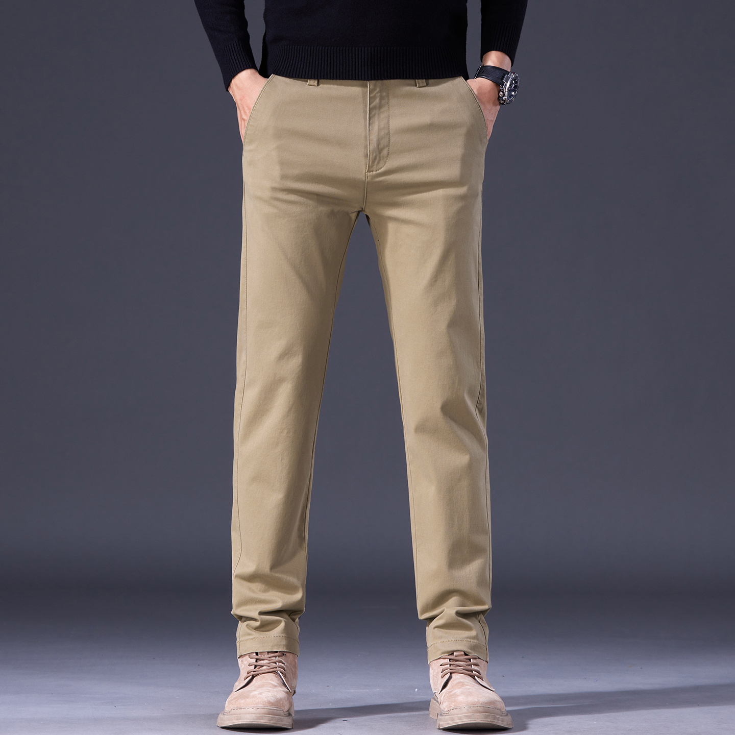 卡其色休闲裤男士2025秋季新款修身直筒纯棉舒适中年商务爸爸裤子
