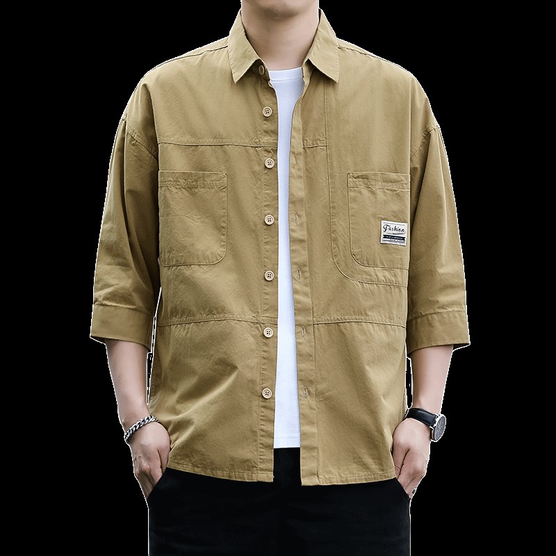 七分袖工作服衬衣薄款五分袖衬衫男中袖春夏青年工装多口袋外