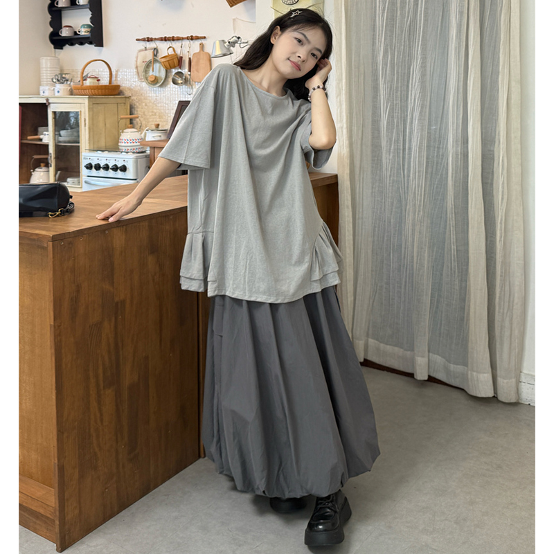韩版灰T恤+马甲灯笼裙时尚三件套