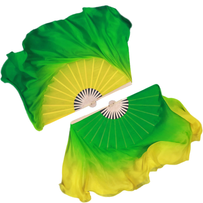 真丝黄绿海派秧歌长稠舞蹈道扇子