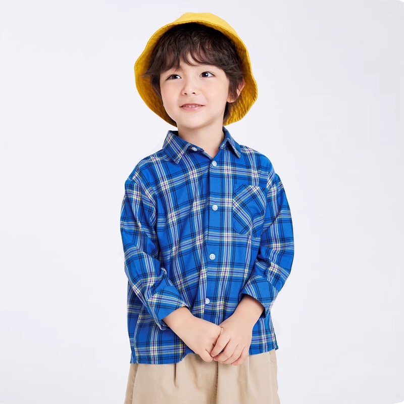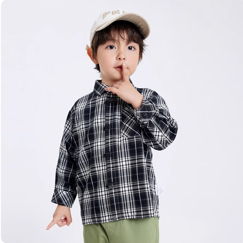 正品清货bala男童格子衬衫儿童洋气春秋款衬衣中小童宝宝休闲上衣