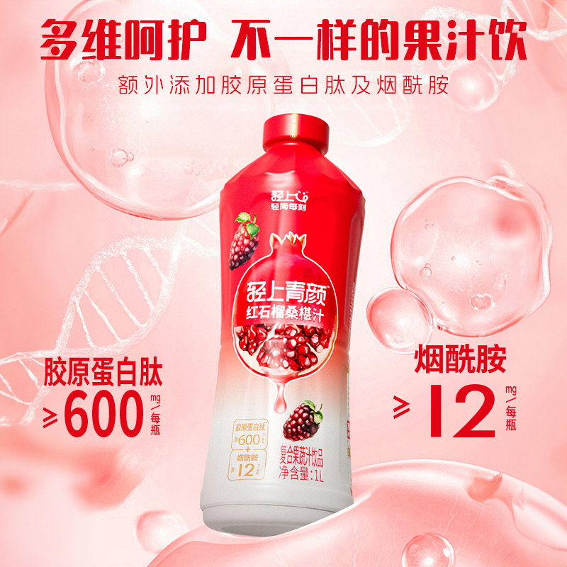 轻上红石榴桑椹汁1L*2瓶复合果汁果蔬汁饮料0添加蔗糖富含维C