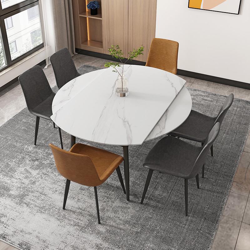 意式轻奢岩板餐桌折叠伸缩饭桌现代简约家用小户型方圆两用圆桌