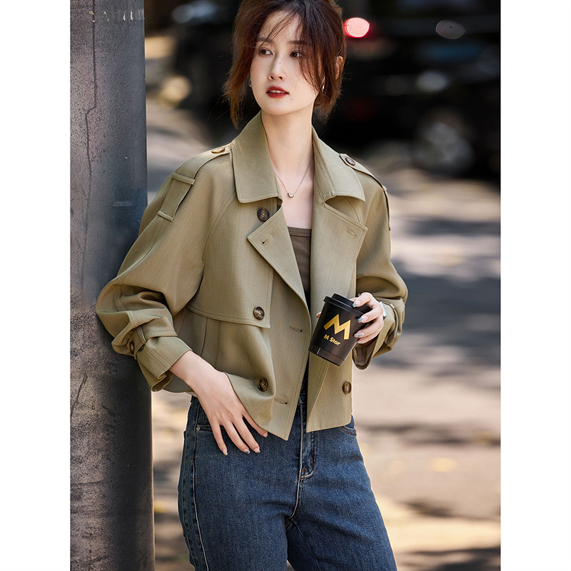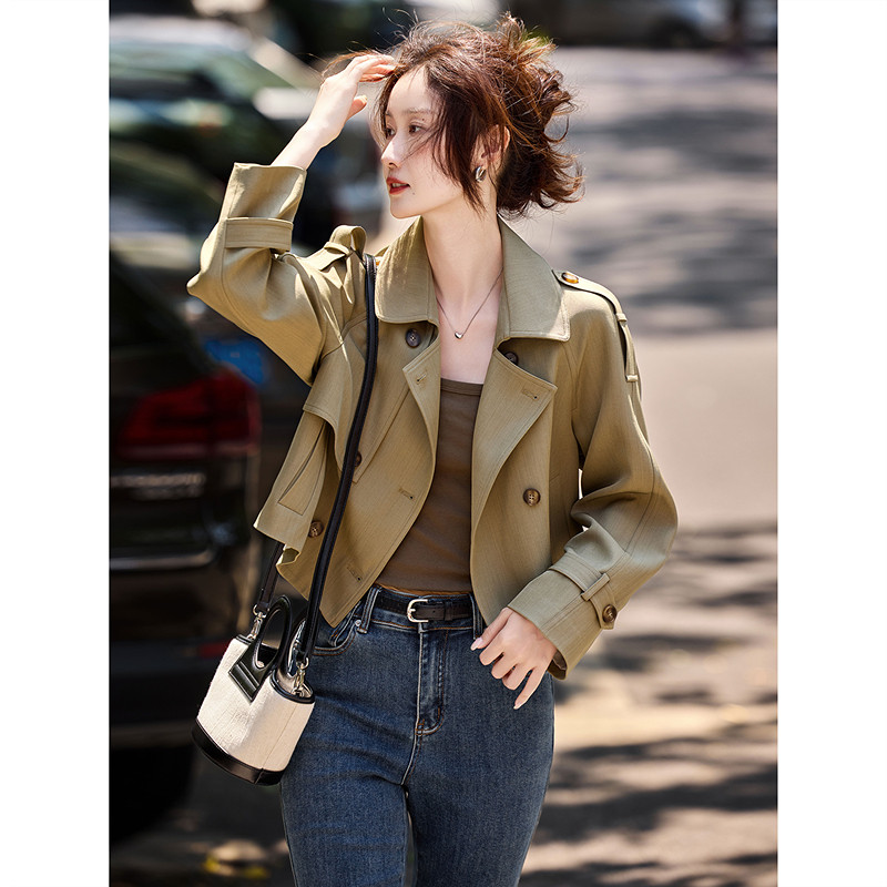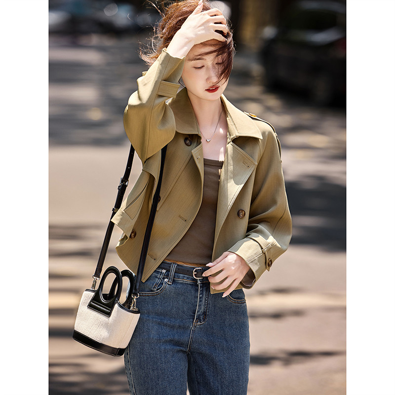 2025年秋季新款双排扣短款风衣外套上衣女装SXFY25044
