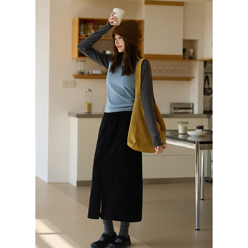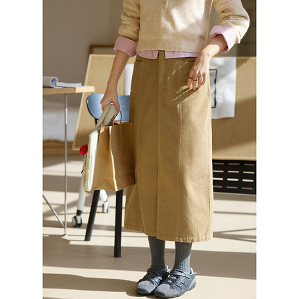 MISAZ冬季灯芯绒拼接简约中长裙