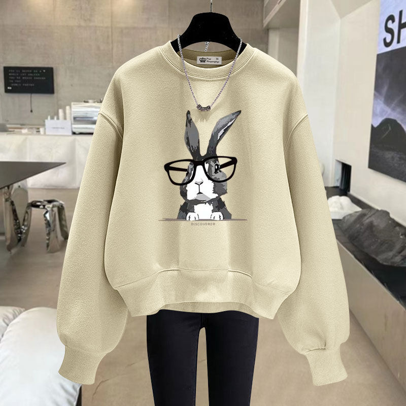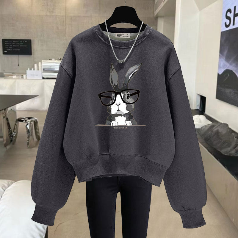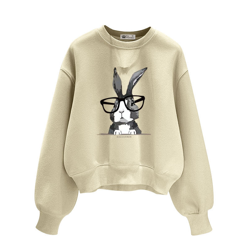 休闲兔子圆领短款卫衣女2025春秋冬宽松慵懒风加绒加厚长袖套头潮