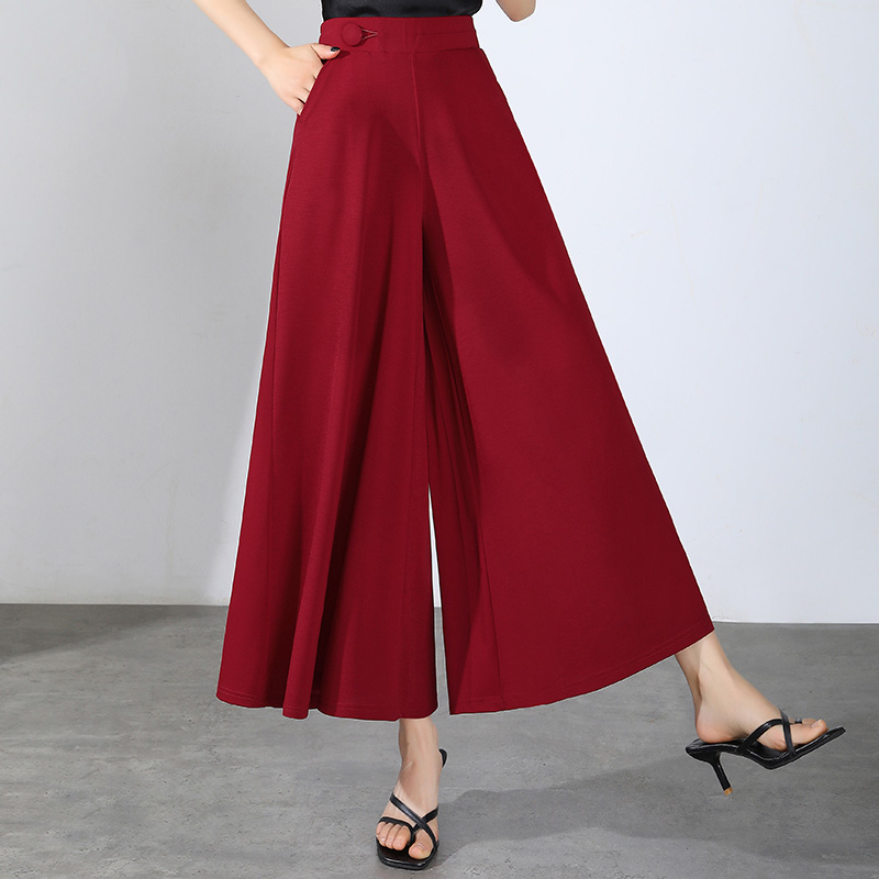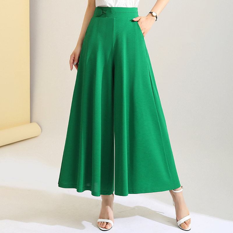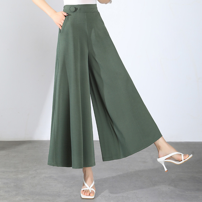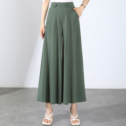 中年阔腿裤夏季冰丝大码裙裤中老年女装薄款裤子妈妈松紧腰九分裤