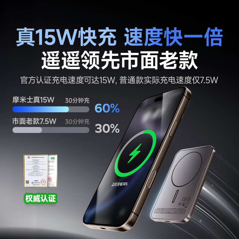 【3C认证可上飞机】MOMAX摩米士磁吸充电宝无线充MagSafe快充超薄金属适用苹果17iphone16promax移动电源