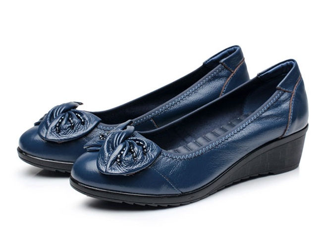 春秋妈妈鞋真皮软底单鞋平底女鞋大码中跟中老年舒适坡跟女士皮鞋