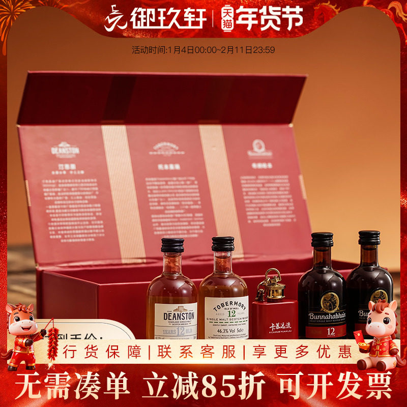 御玖轩 卡慕远流酒版礼盒套装汀斯图/托本莫瑞/布纳哈本12年洋酒
