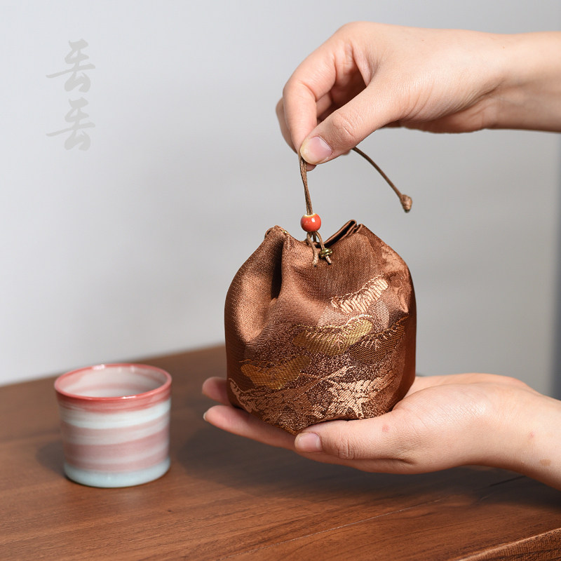 高档织锦缎茶杯主人杯茶具便携收纳布袋子刺绣文玩珠宝首饰包装袋