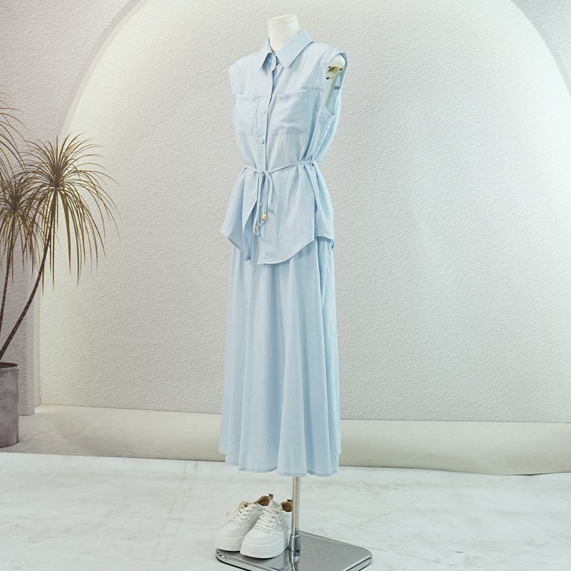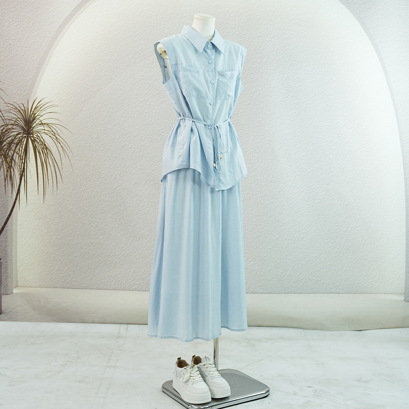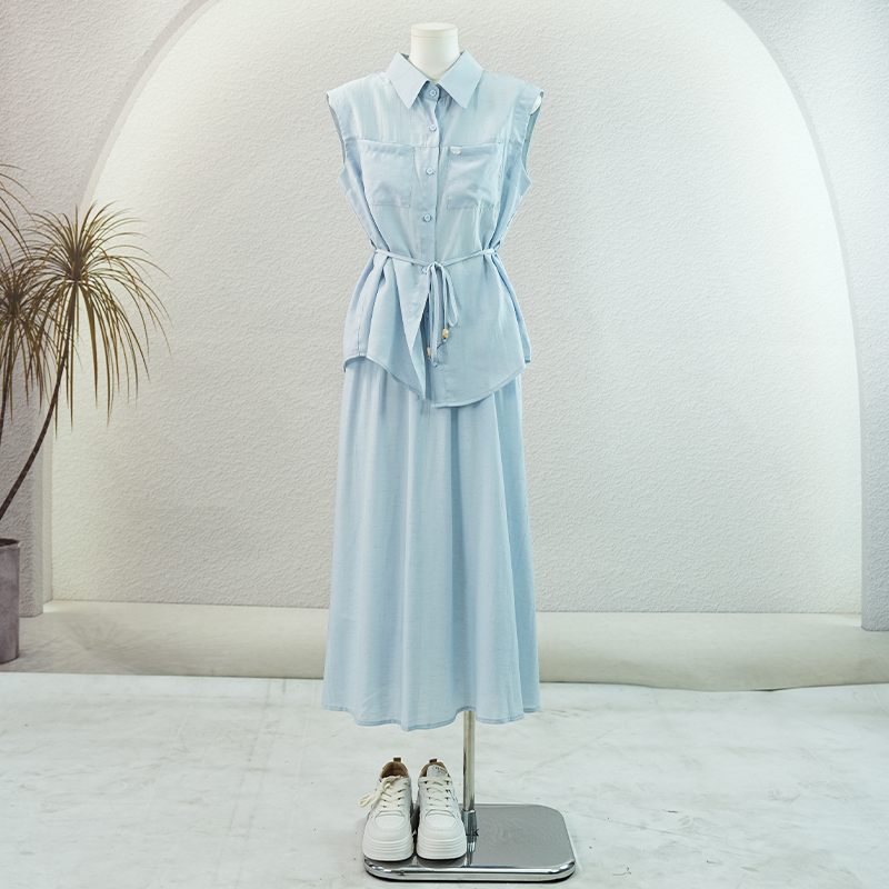 夏季绝美套装女轻熟御姐小众无袖衬衫气质半身裙子轻薄透气两件套