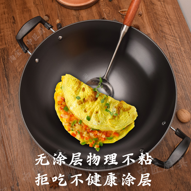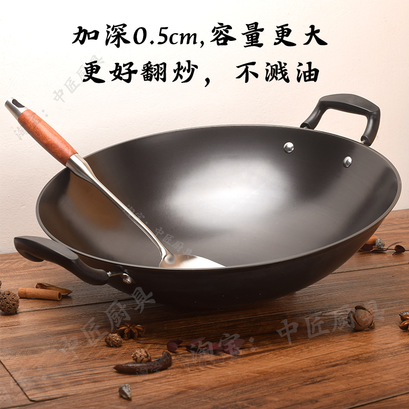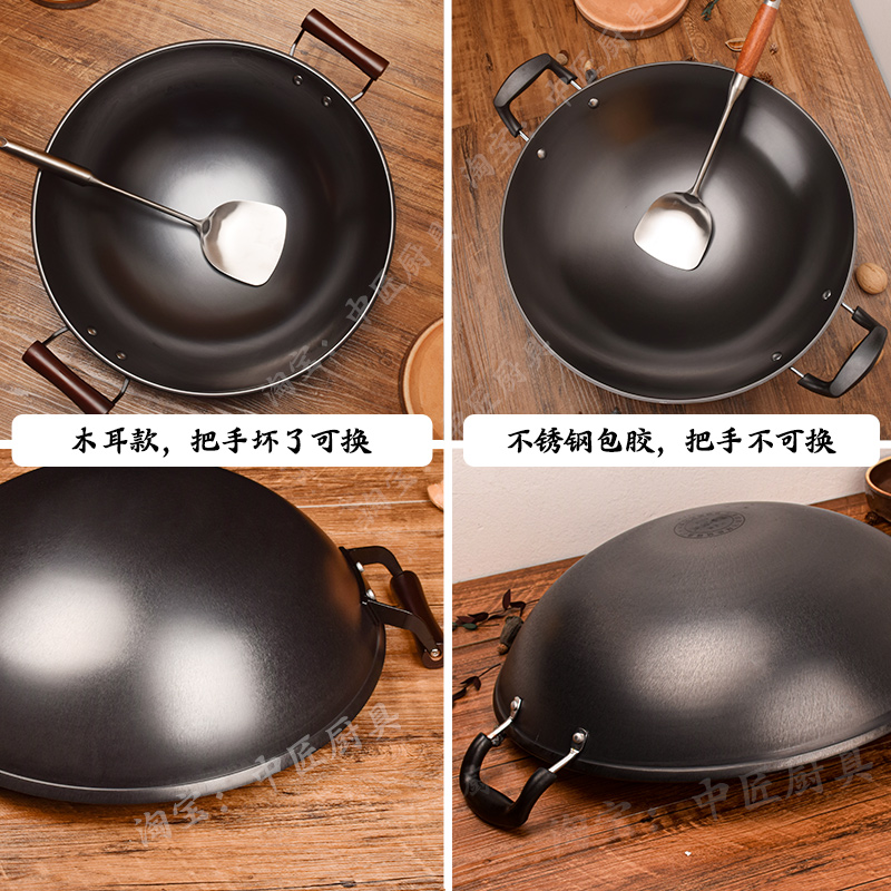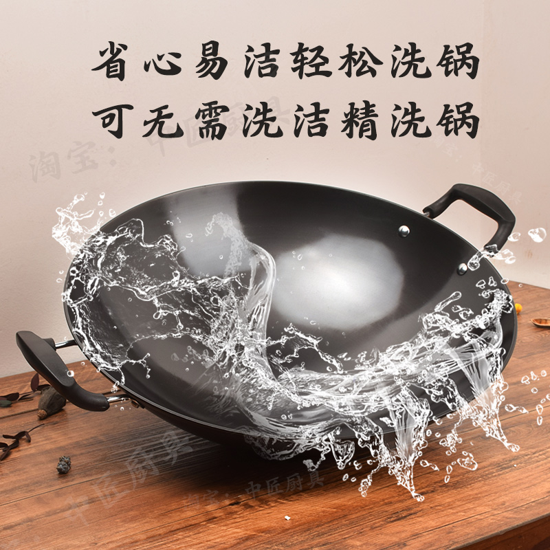 炒锅老式家用炒菜锅无涂层不粘圆底佛山铸铁锅已开锅双耳紫金铁锅