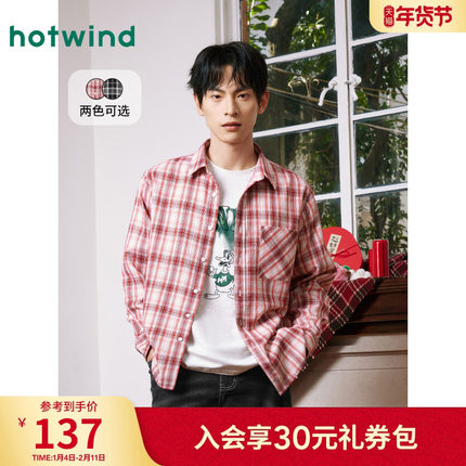 热风2025年新款男士格子衬衫