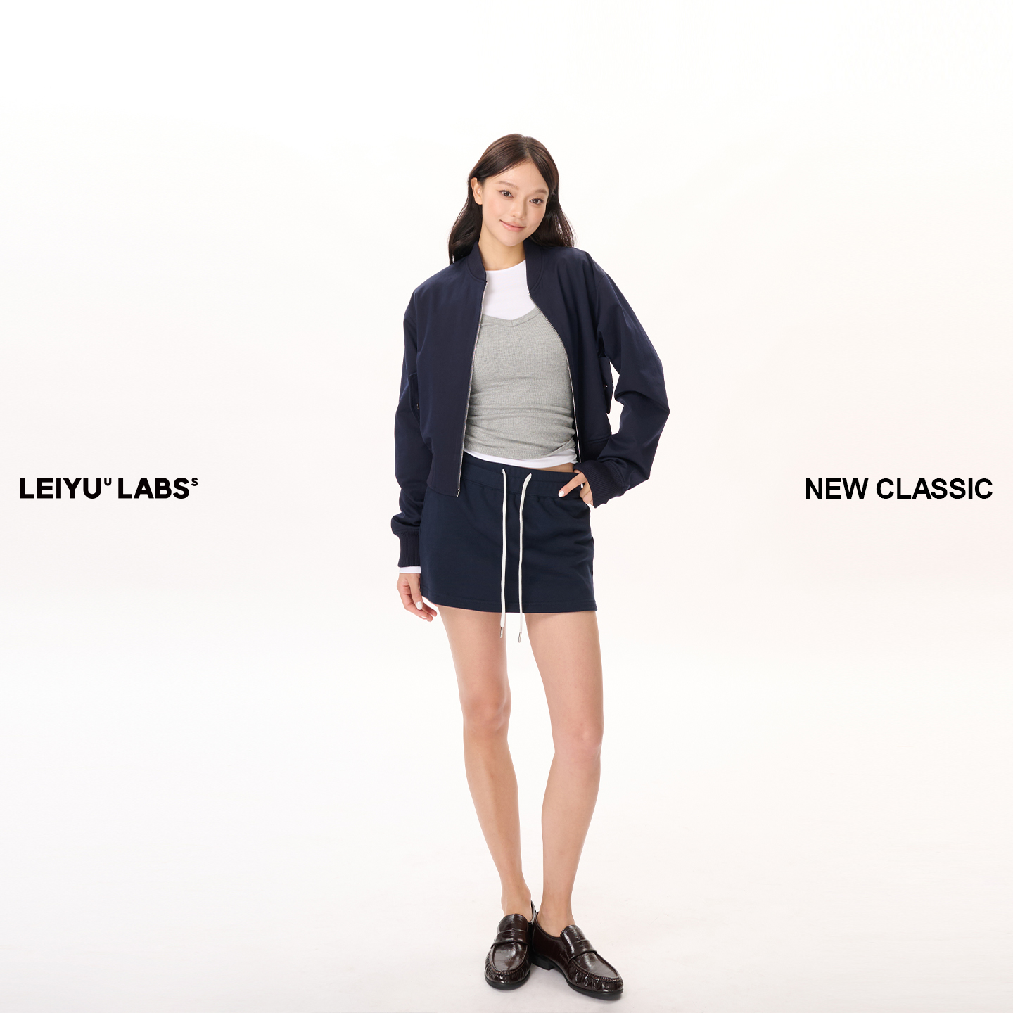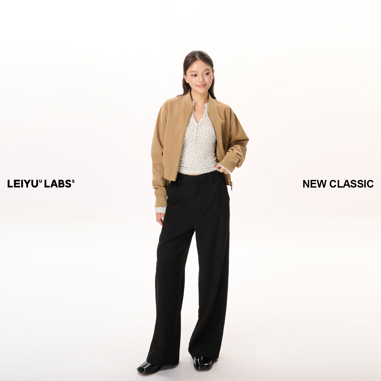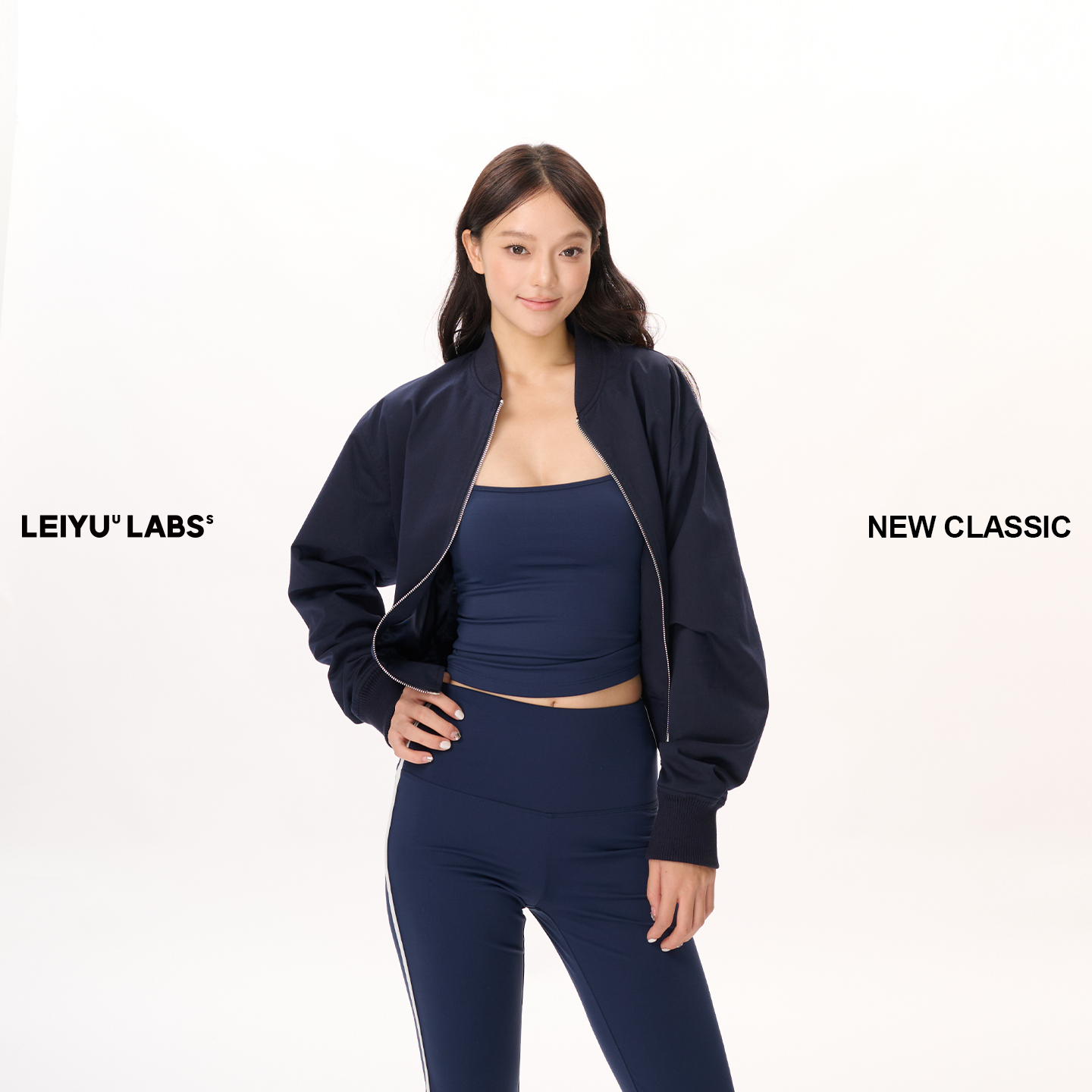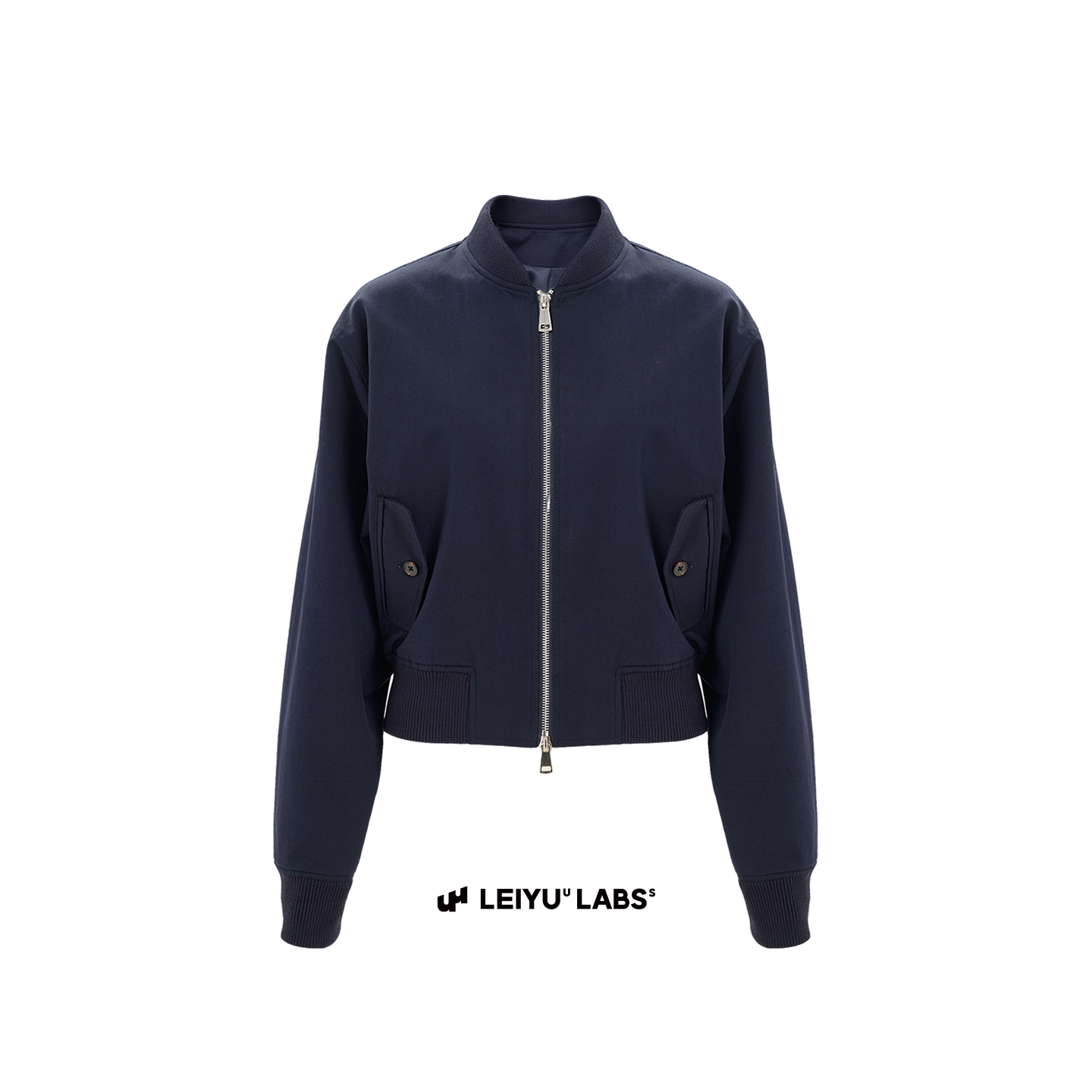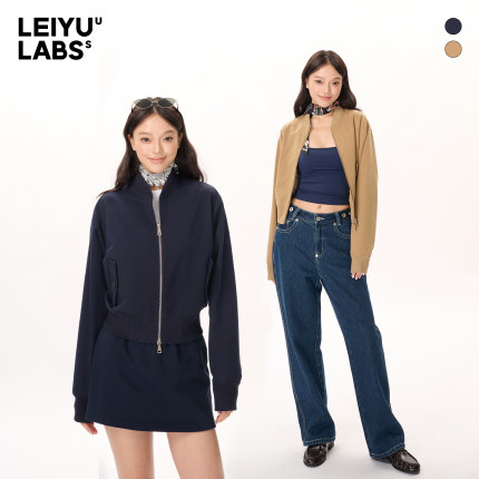 LEIYU LABS宽松落肩袖棒球服外套女秋2025年新款罗纹休闲夹克上衣