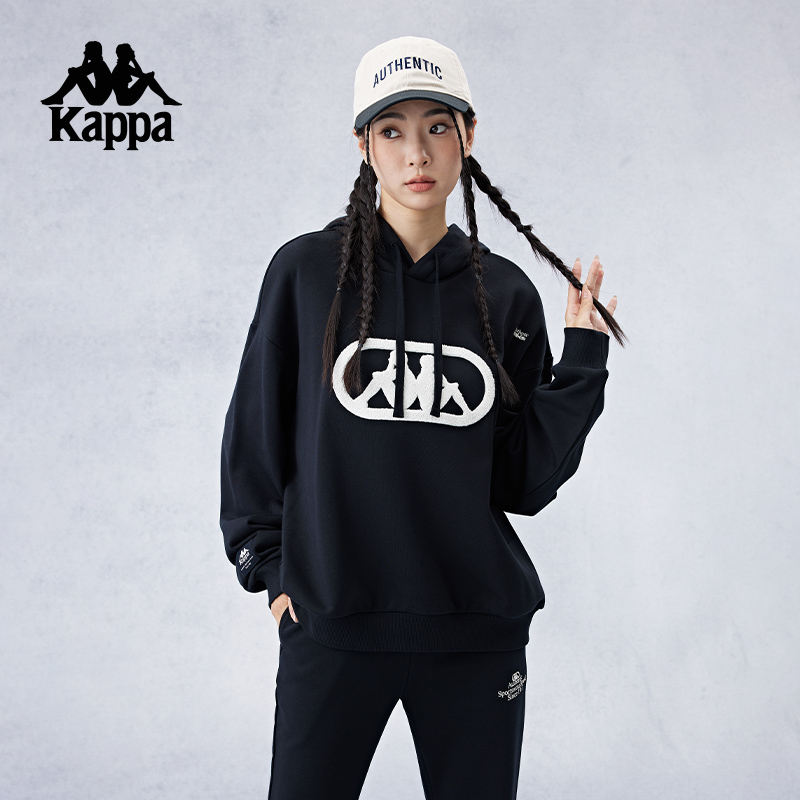 Kappa卡帕背靠背复古针织运动卫衣套头衫新款男连帽外套女士上衣