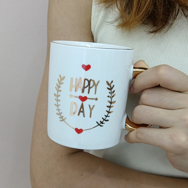 食魔师创意金手柄马克杯尾货清仓处理家用陶瓷杯办公室水杯 350ML