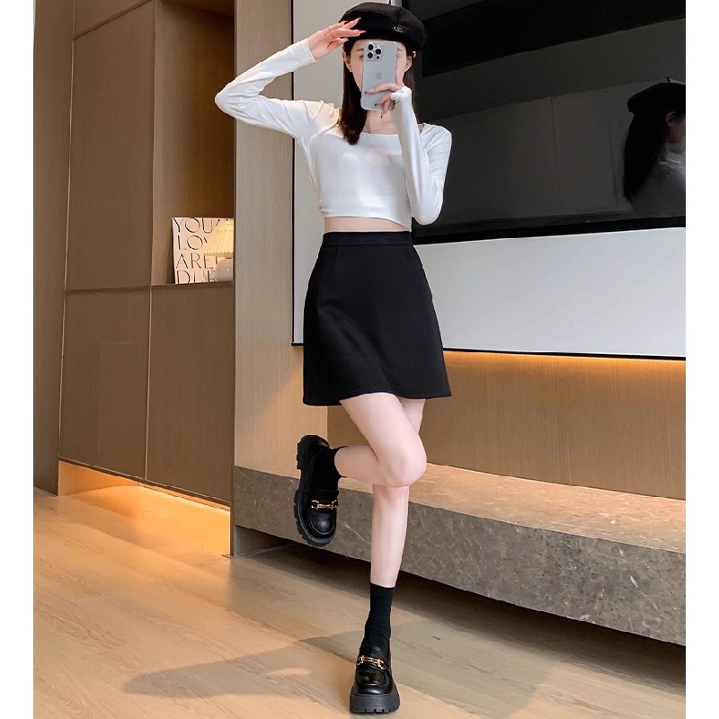 灰色毛呢半身裙女秋冬2025新款高腰a字裙显瘦小个子加厚包臀短裙