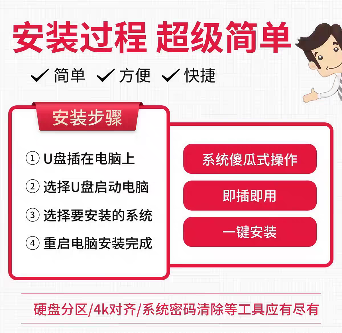 电脑重装系统u盘win10/11/7/XP正版一键安装PE启动纯净旗舰专业版