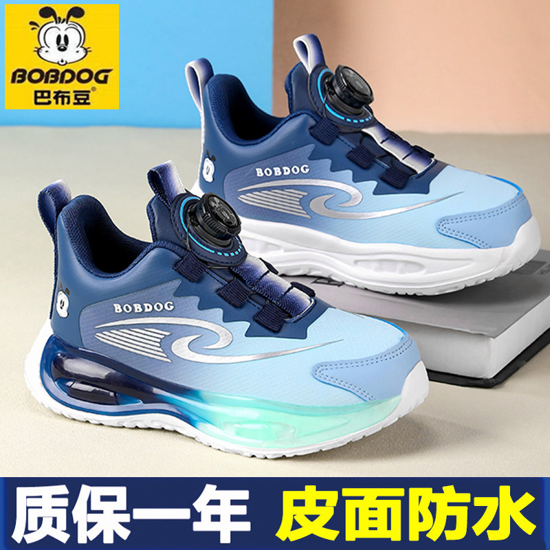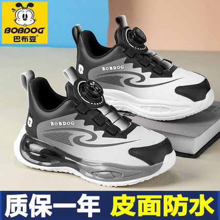 巴布豆男童鞋子春秋新款皮面防水中大童男孩运动鞋儿童学生跑鞋