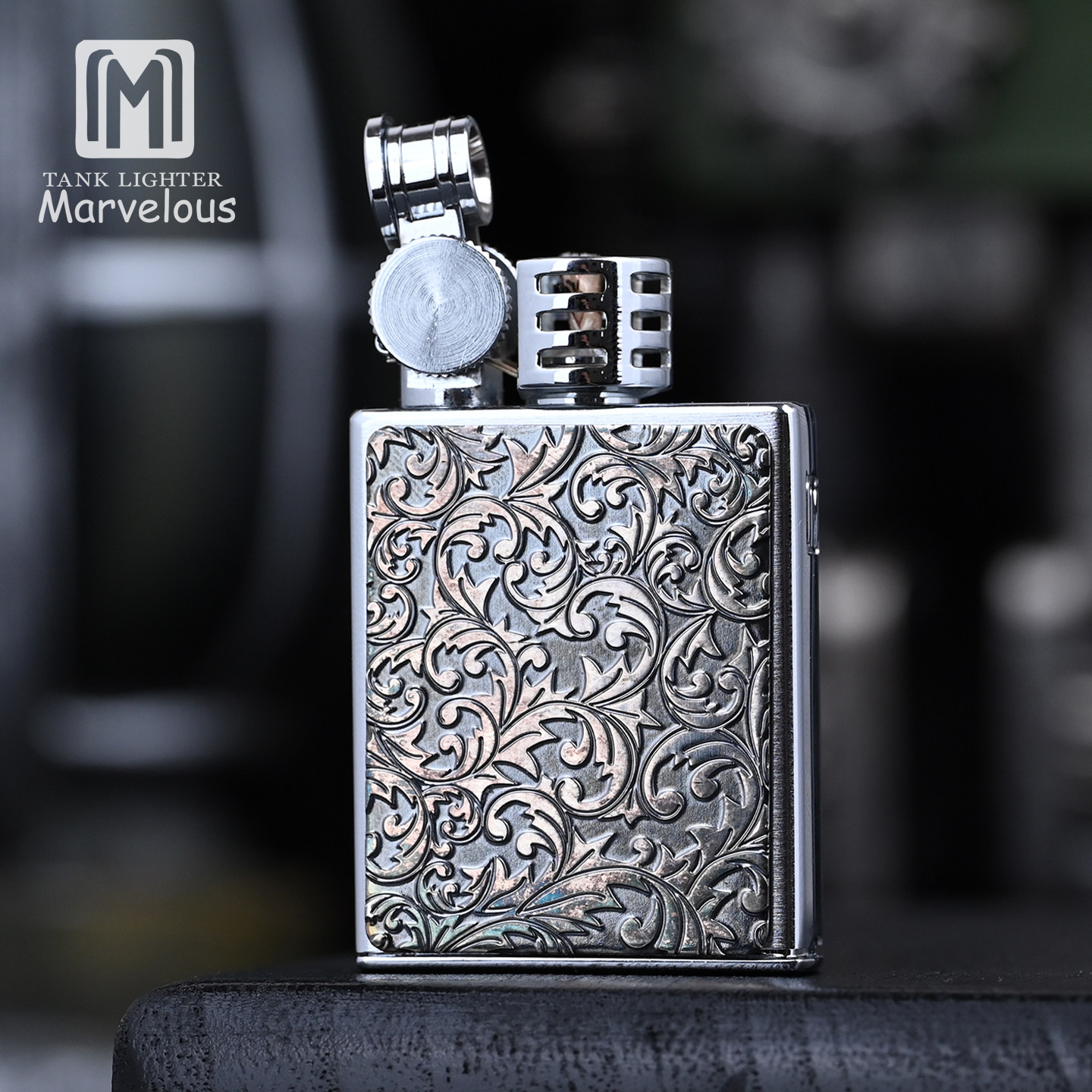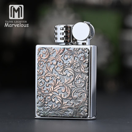 原装进口玛乐思marvelous复古黄铜双面唐草煤油打火机收藏送男士