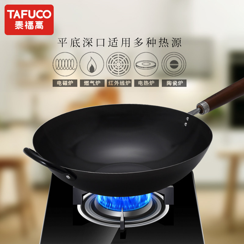 TAFUCO/泰福高炒锅铁锅熟铁锅电磁炉炒菜锅家用不粘锅无涂层