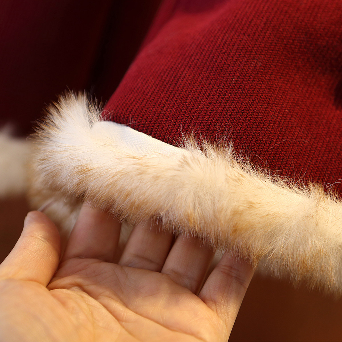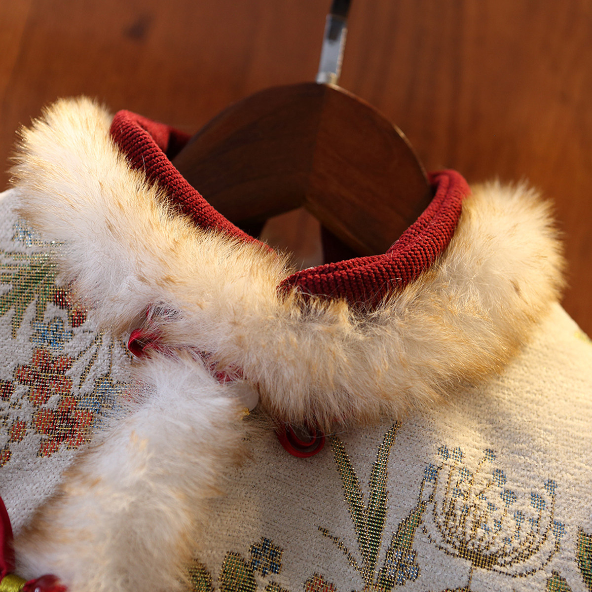 女童新中式唐装拜年服冬装加厚毛绒领花卉刺绣中国风新年服两件套