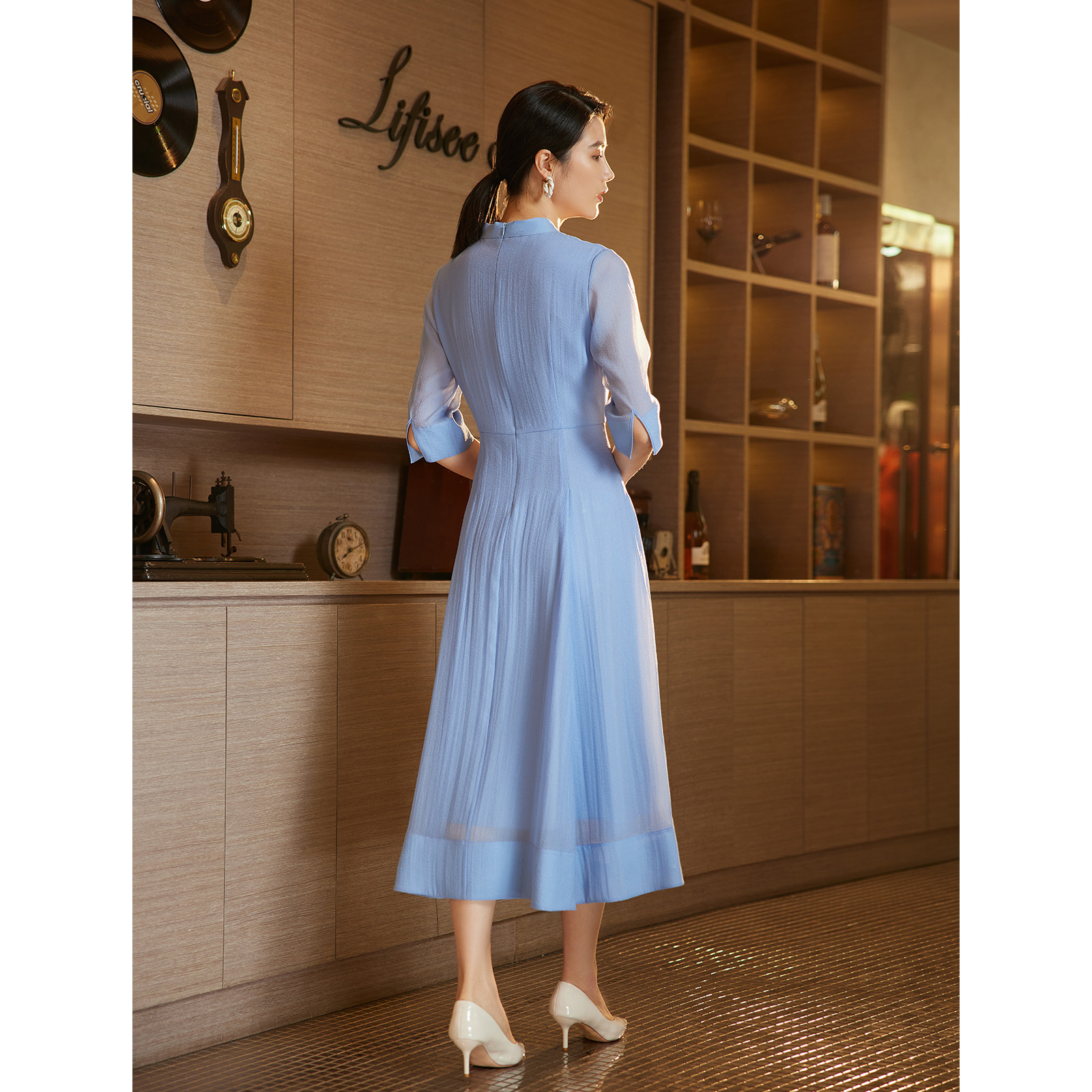 【商场同款】BBLLUUEE/粉蓝衣橱2025夏装雅致东方感塑型连衣裙女