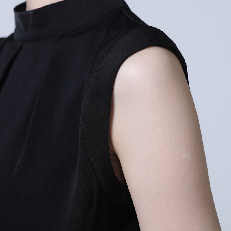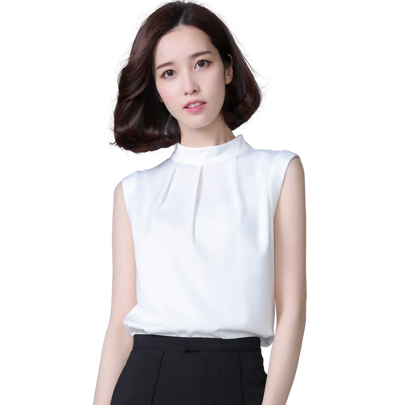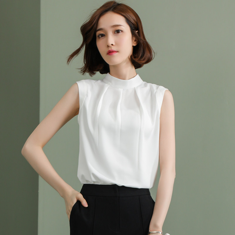 宿色雪纺衫女夏装气质无袖雪纺衬衫高领上衣洋气小衫立领打底衬衣