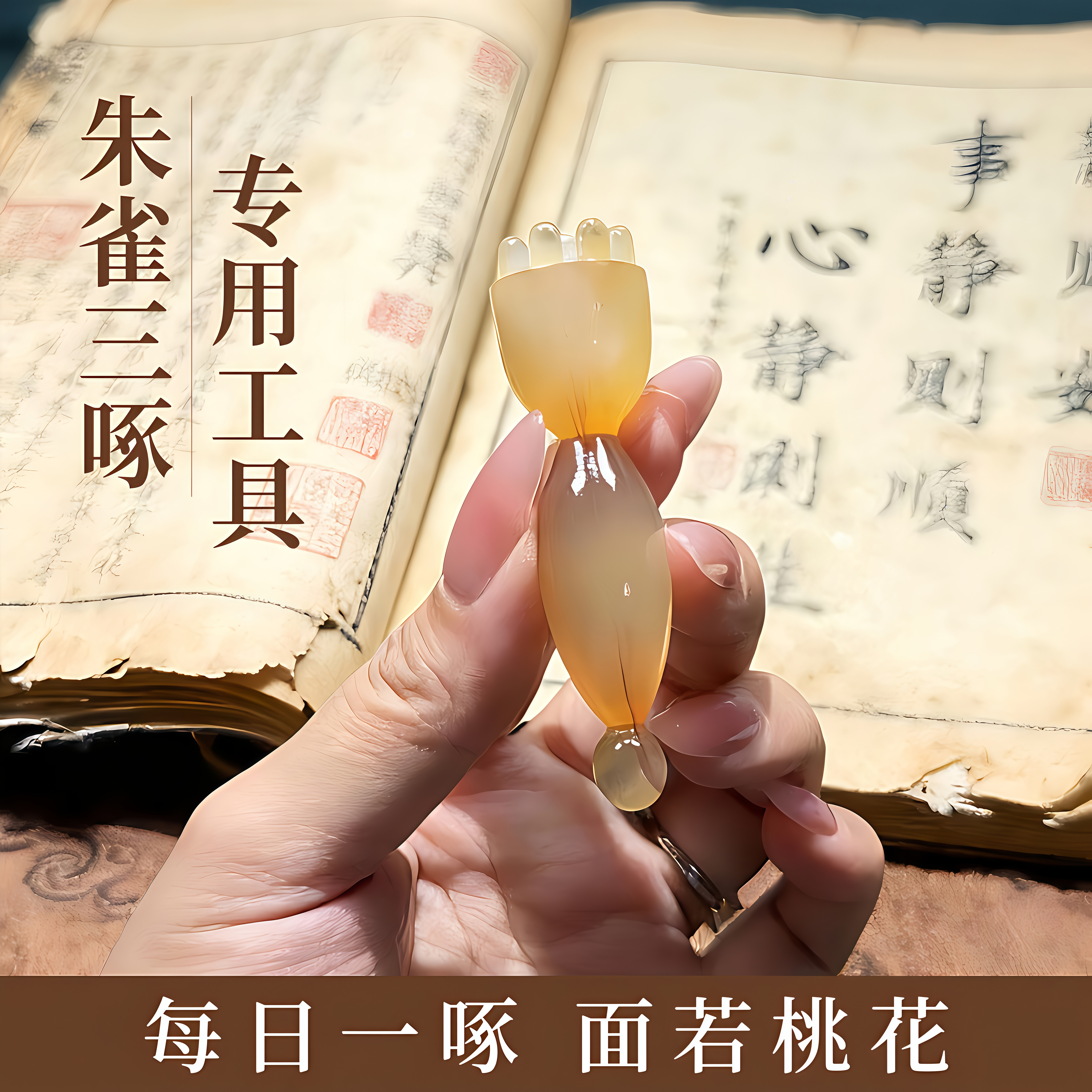 朱雀三啄工具羊角小莲蓬眼部按摩棒滚珠点穴笔面部美容拨筋棒