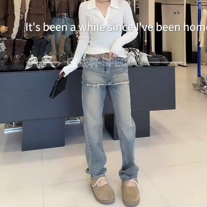 裤裙牛仔裤女2025冬季新款做旧磨白直筒裤宽松显瘦长裤子欧洲站q